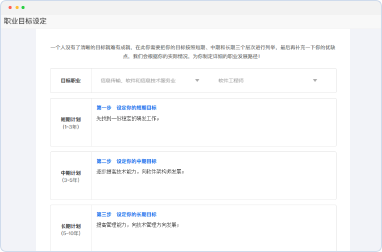设定短/中/长期目标 → 生成学历/技能/实习计划 → 进度跟踪与动态优化