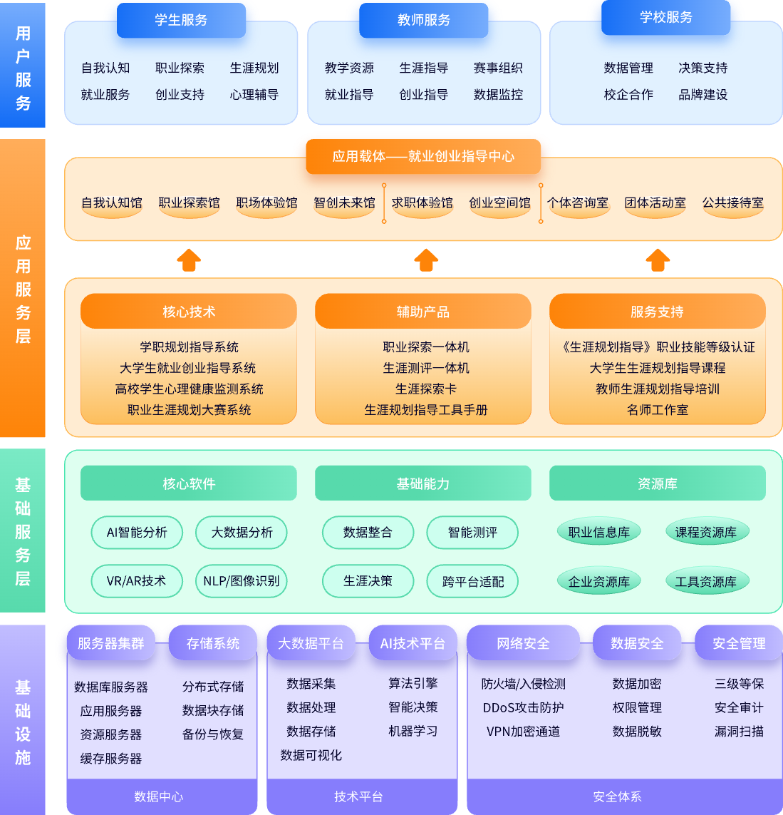 基于智能算法实现职业倾向评估、就业竞争力诊断、学习路径优化,让每个学生获得个性化成长方案。