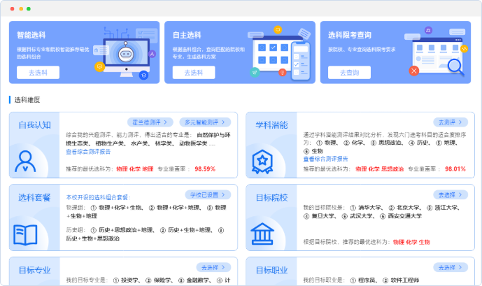 科学测评认知自我 → 智能选科匹配方向 → 学业督导提升成绩 → 精准志愿锁定目标
