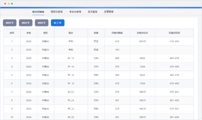 基于教育部官方数据,智能匹配历年录取分数线、位次趋势与招生计划,为志愿填报提供科学参考,有效规避填报风险!
