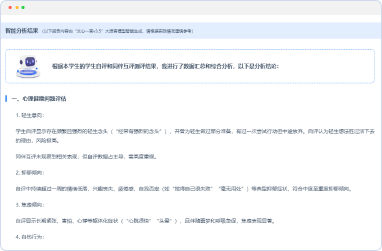 基于多维量表,自动生成个体与群体心理画像,精准定位风险因子与积极品质。