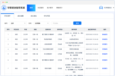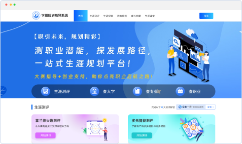 以AI技术为驱动,整合学生成长全周期数据(自我认知→职业探索→生涯决策→动态规划),为院校构建“精准化生涯辅导+数据化教育管理”平台,赋能学生职业发展、教师高效指导、学校科学决策。