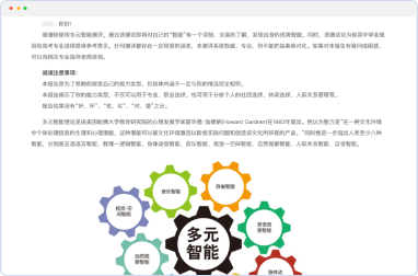 深度分析24+维度的测评数据,生成个性化生涯报告与规划建议