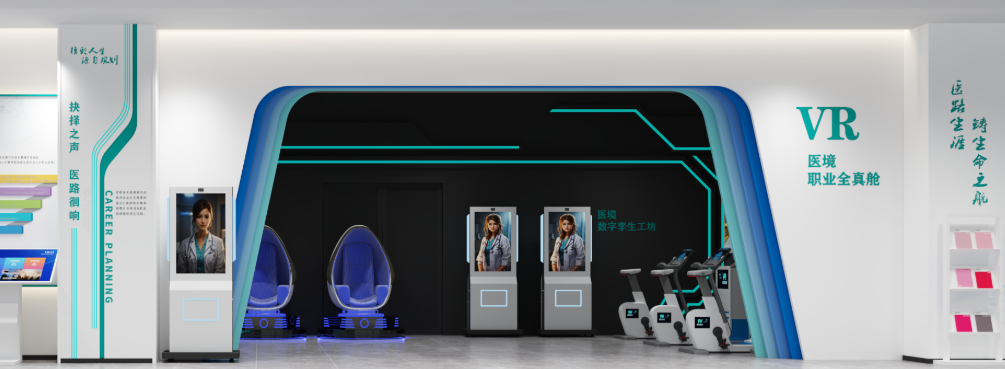 依托 VR 沉浸式平台、学职探索自助仪,还原 20 + 行业真实工作场景(如医生、工程师、设计师),配套职业百科数据库,帮助学生链接职业与专业选择。。